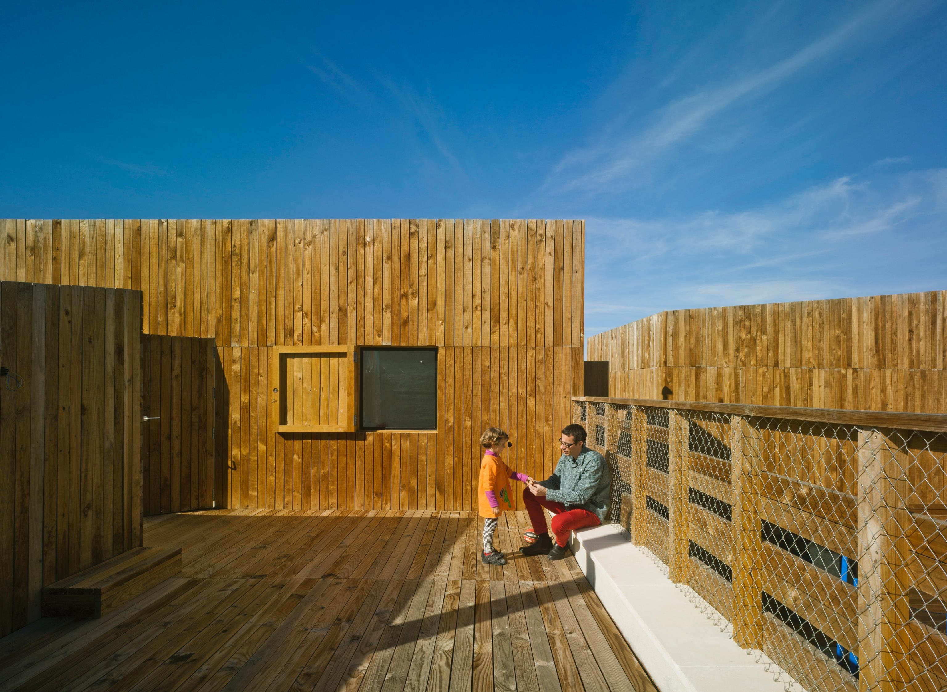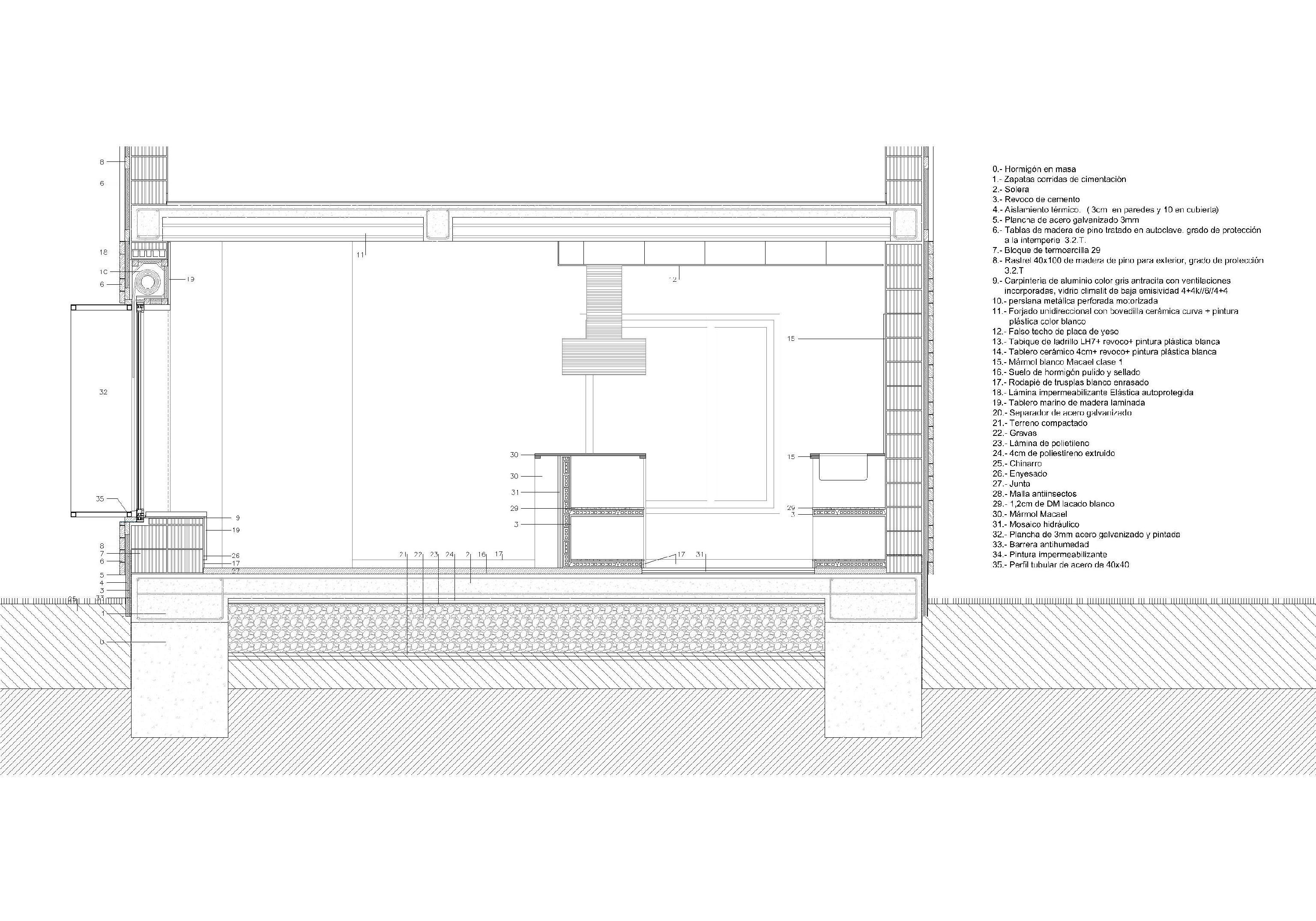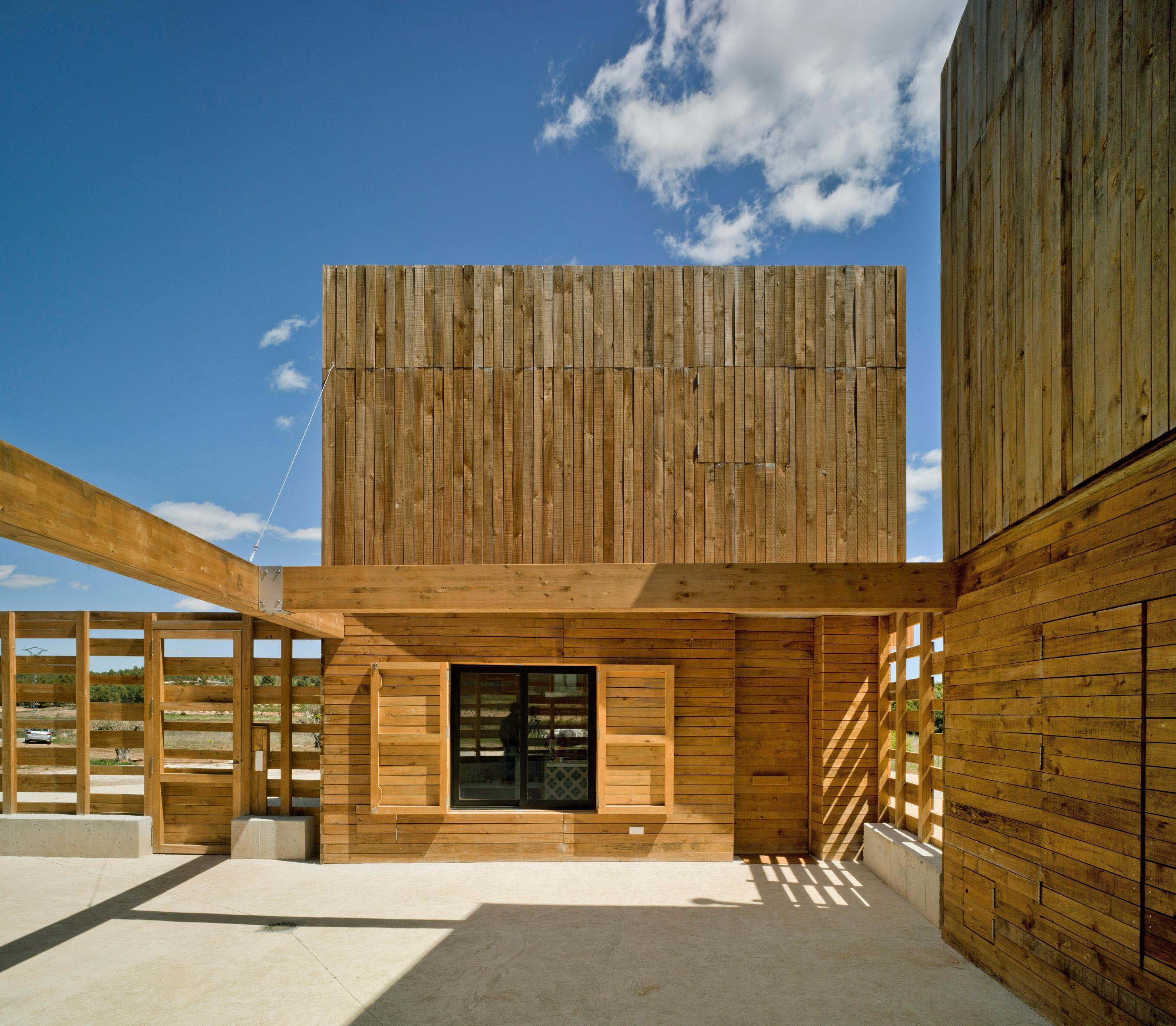 La construcción es sencilla, con materiales y técnicas de la zona y con un revestimiento englobador característico de pino tratado (PEFC). Se emplean múltiples estrategias que adaptan la vivienda al entorno climático en el que se sitúa, proporcionando confort y eficacia energética