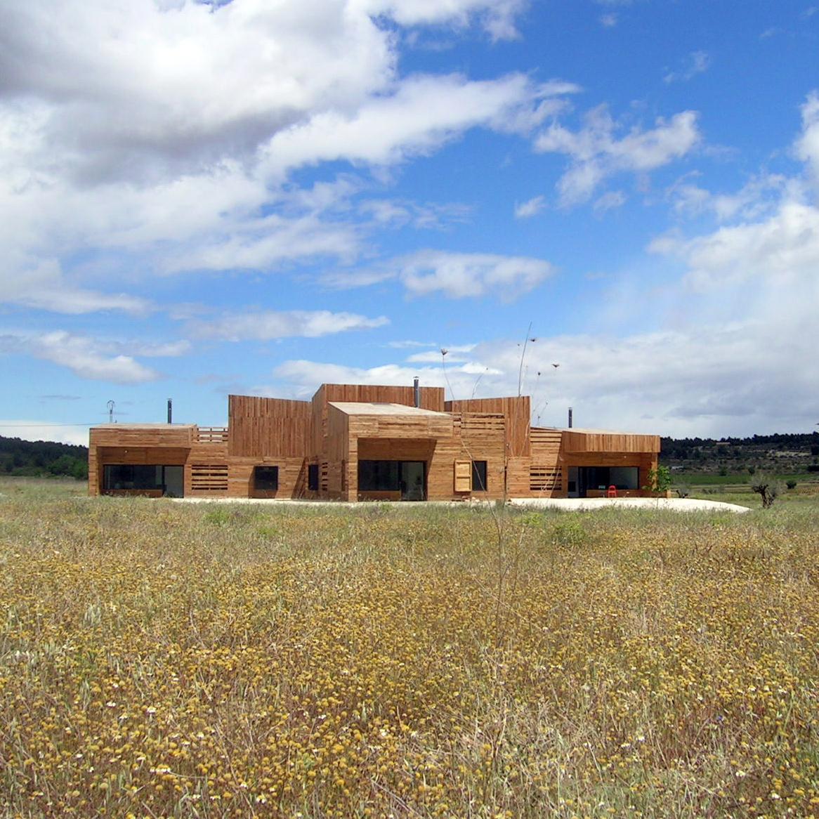 Como objeto arquitectónico la vivienda trata de fundirse con el paisaje circundante, un valle de vides y olivos, haciendo patente con su geometría confusa y una materialidad expectante, una actitud más pendiente de los condicionantes contextuales que de sí misma. Una arquitectura desacomplejada que permanece a la espera de transformarse con el paso del tiempo, según el sol vaya volviendo grises sus fachadas y vayan apareciendo signos de unas vidas jubilosas.