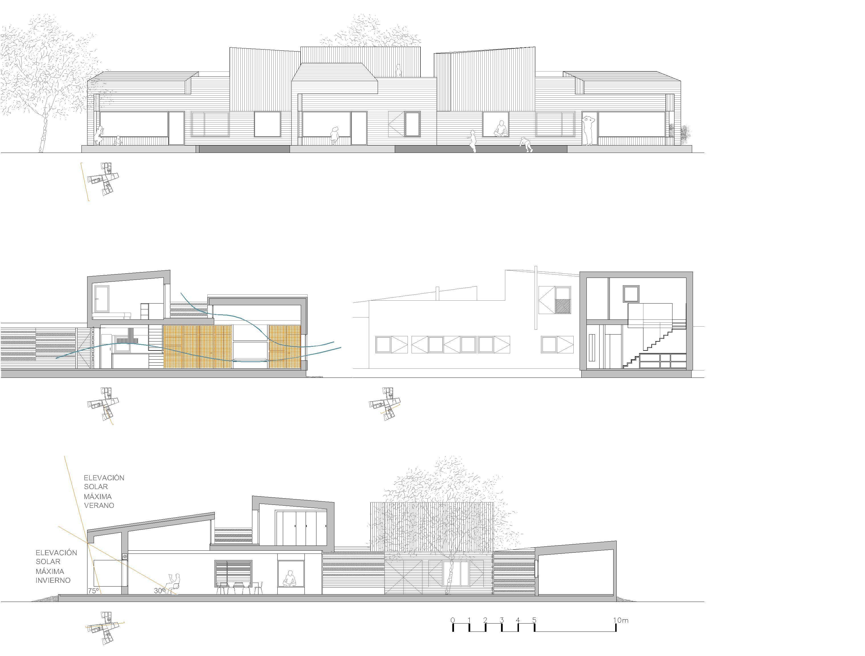 Este refugio se genera a partir de tres unidades independientes; tres hermanas y sus familias, tres casas con buenas vistas y buena orientación pero también con cierta intimidad entre ellas. Tres viviendas juntas pero no revueltas, un campo, un patio común, un lugar donde caben todos los primos, un lugar donde caben todos los amigos.