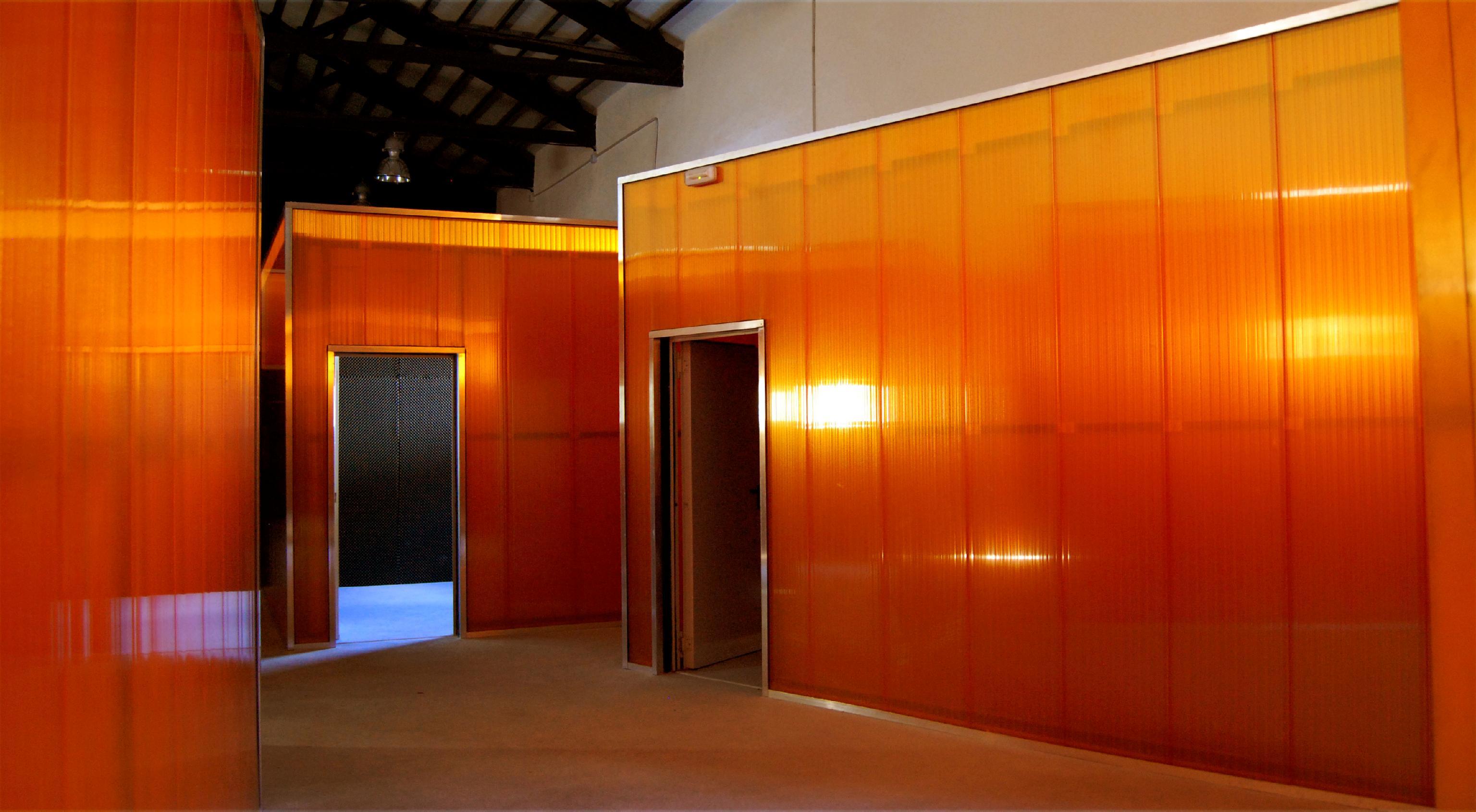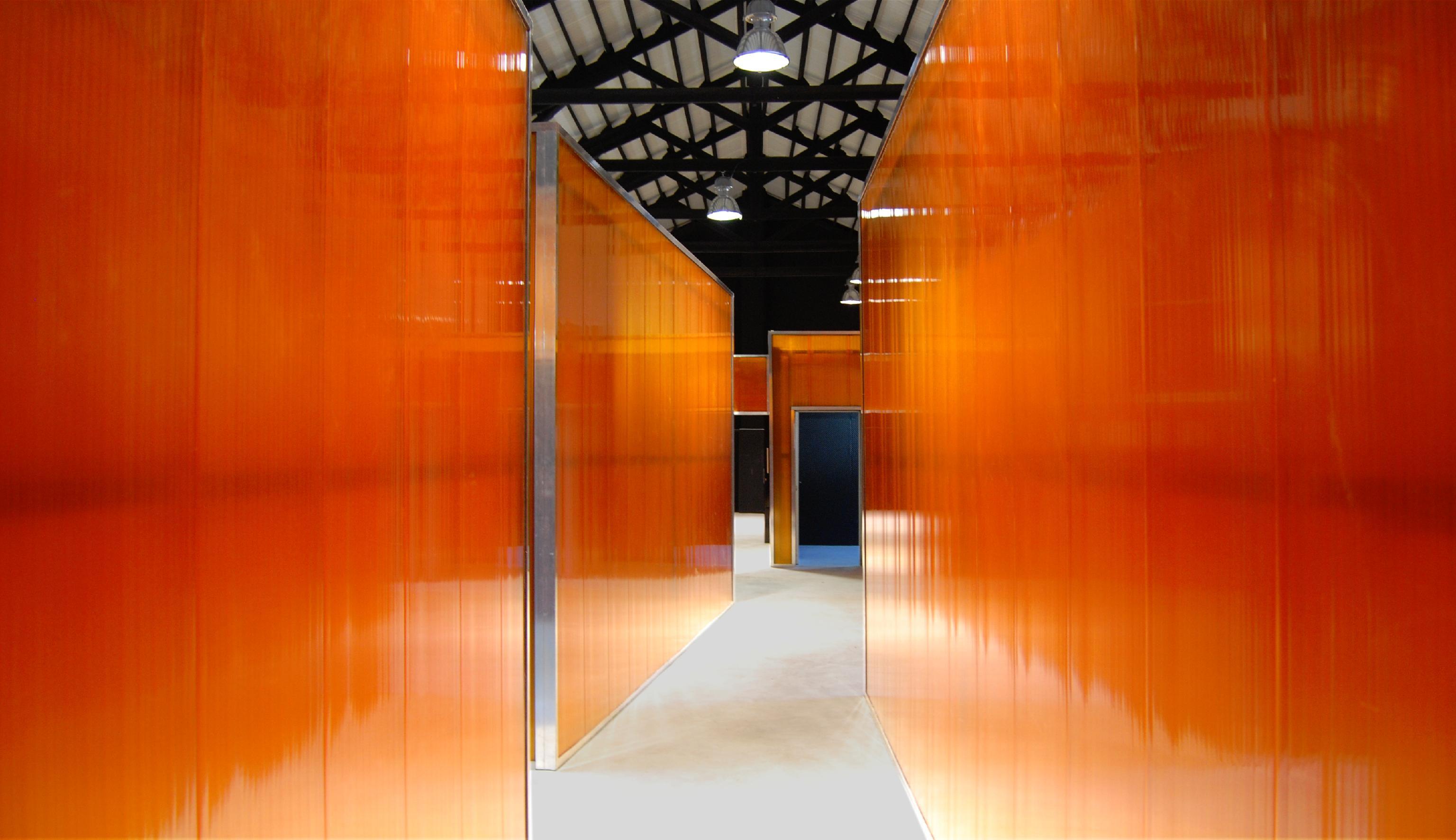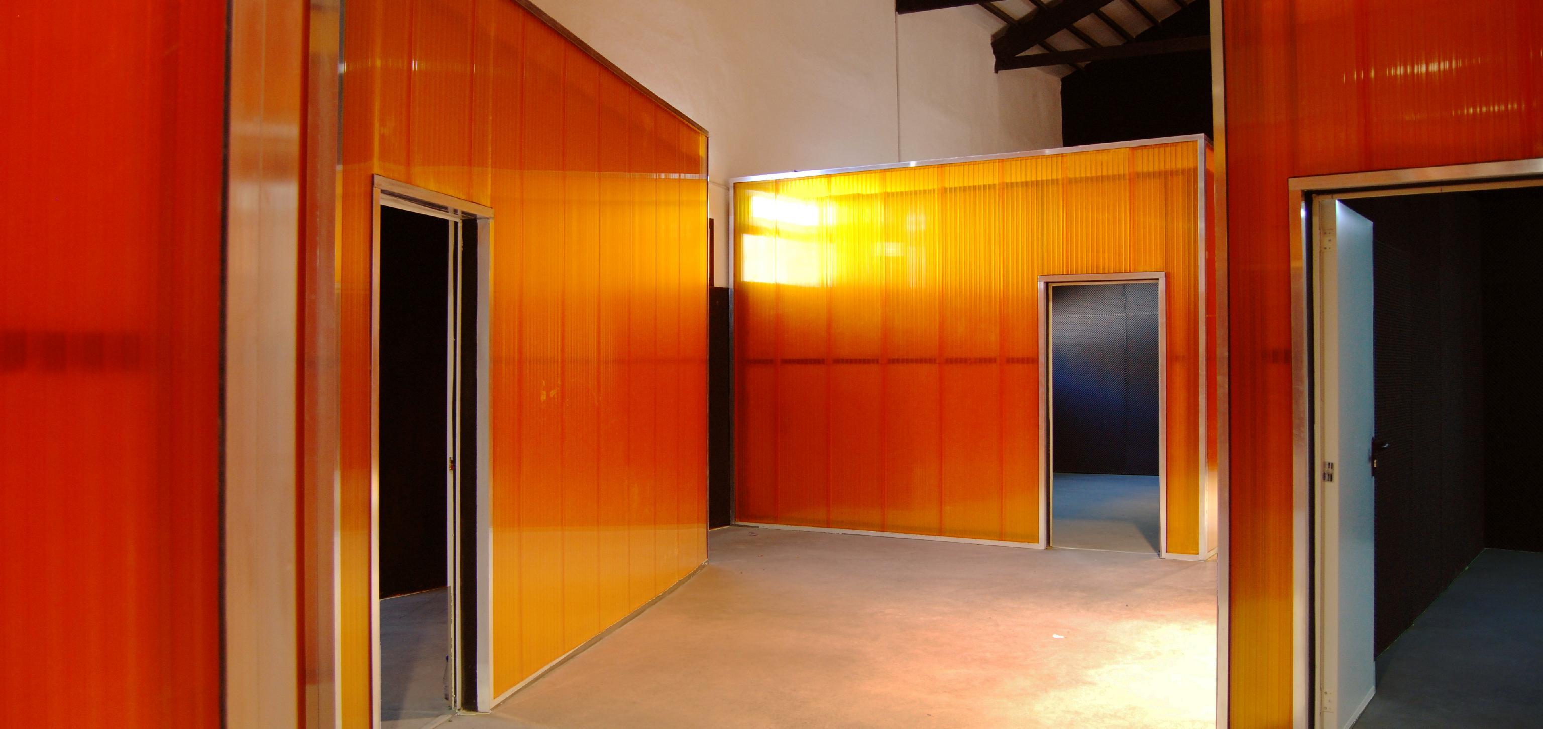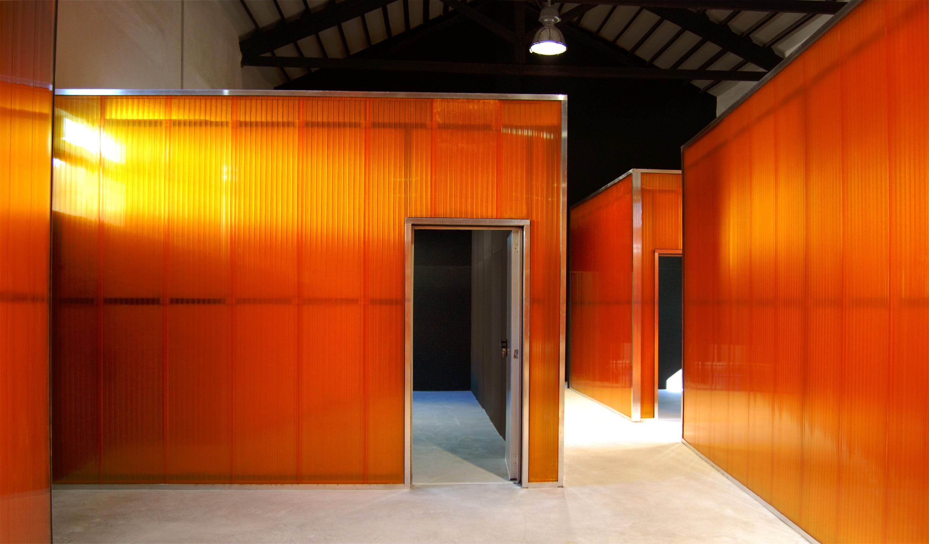 El tratamiento de las nave exterior se yuxtapone con el interior, mientras que por fuera se pretende dejar los muros desnudos y añadir solamente materiales puros como el acero o el hormigón, reflejos de su actividad industrial innata, en el interior se trata de actuar de una manera más pausada y reflexiva, utilizando materiales plásticos, como policarbonato coloreado, espuma piramidal, o falsos techos de toba, además el estudio cromático de la nave ha sido cuidado con el mismo esmero con el que se pretendía crear el espacio interior, haciendo una base neutra de lo existente e introduciendo el color en los elementos inventados.