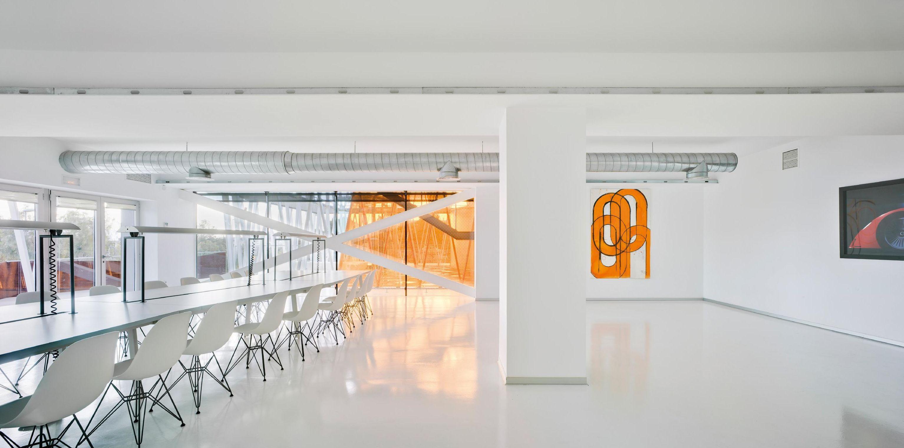 La galería en su tramo noreste cierra el conjunto y genera plataformas a distinto nivel formando espacios de trabajo o relax entre las copas de los pinos. Una red Wi-Fi permite trabajar en todo este espacio al aire libre.