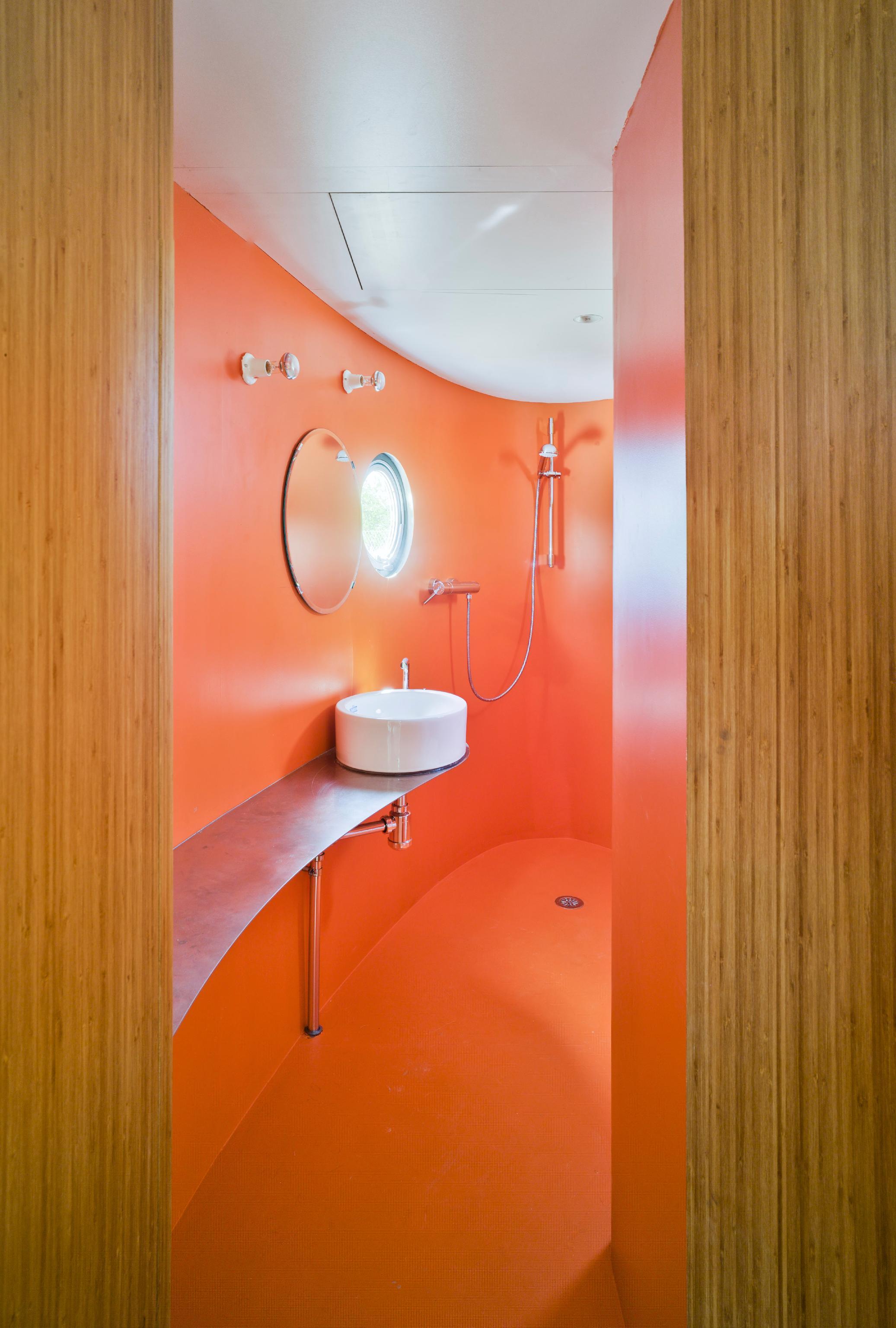 La machine home está concebida como un objeto austero y enigmático en ausencia de sus habitantes para evocar más una infraestructura territorial que un estándar residencial que soslaye los efectos de la inquietud por la seguridad. En el interior de la machine home, por el contrario, se ha buscado crear un espacio y una atmosfera de máxima amabilidad y calidez.
