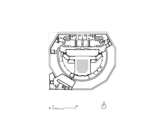 3. Construcción de una planta de sótano en la zona central del edificio para ubicar camerinos, vestuarios, almacenes y una pequeña sala de ensayo.
