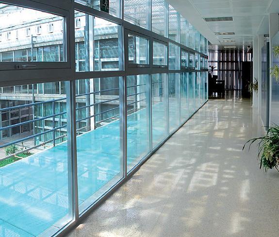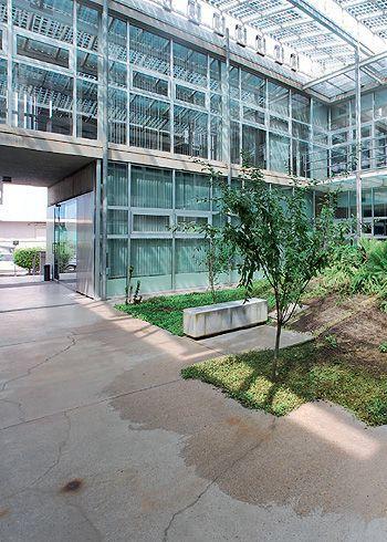 Eficiencia energética: Una óptima utilización del recurso del sol. El edificio presentaba mucha superficie acristalada en sus fachadas, con los inconvenientes climáticos del efecto invernadero, así como incomodidad por reflejos y exceso de radiación para los puestos de trabajo. Estos problemas se han solucionado creando filtros solares: por un lado la pérgola de vidrios fotovoltaicos sobre el patio interior, protegiendo los despachos que vuelcan al mismo; por otro las placas fotovoltaicas de cubierta, que colocadas horizontalmente crean una especie de cubierta ventilada, y por último las lamas orientables en las fachadas.