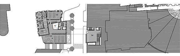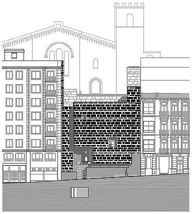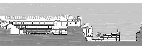 El plano de situación plantea muy claramente la relación entre los diferentes componentes arquitectónicos de este proyecto. A nuestro entender, muestra la voluntad de hacer ciudad que inspira a los autores de este proyecto, no solo atento a los espacios interiores del Museo sino también a los espacios públicos de una ciudad como Cartagena en la que tan densa es la historia urbana.