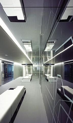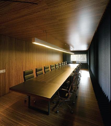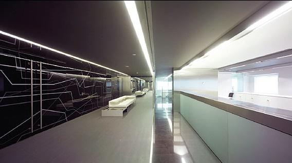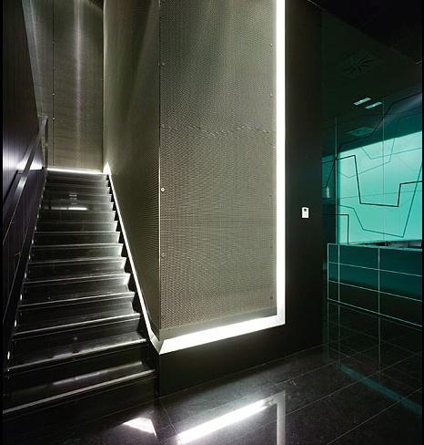 Conscientes de la representatividad de la sede respecto a un colectivo, el proyecto no tiene ninguna concesión a lo arbitrario. Apuesta por el blanco y negro en las aplicaciones de color y las texturas metálicas y el vidrio en los revestimientos. Existe un estudio exhaustivo de los espacios y su tratamiento (color, uso de texturas, uso de espejos¿) a fin de solventar lo limitado de un espacio de entresuelo, tratándolo como una escenografía e intentando modificar las percepciones estándar de alto-largo-ancho, generando espacios sorpresa.