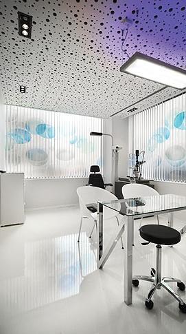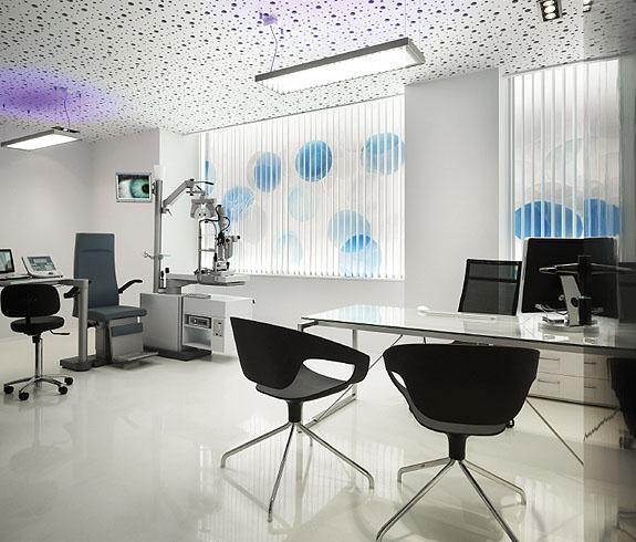En un céntrico local, situado en esquina, se ubica una Clínica Oftalmológica que constará de espacios funcionales a los que se caracterizará de manera diferente según su función (recibimiento, exploración, consulta o intervención médica) y adecuado para cada fin.