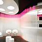 De la misma manera la luz artificial articula los diferentes espacios. En la sala de espera se solapa el uso de la luz fría y cálida general con la específica de los Leds RGB tomando cada una mayor o menor protagonismo.