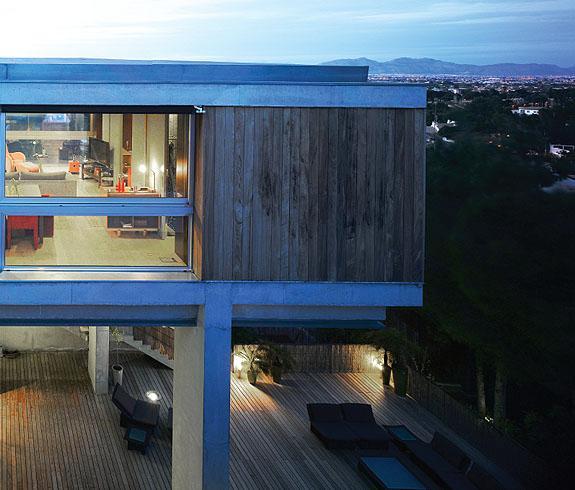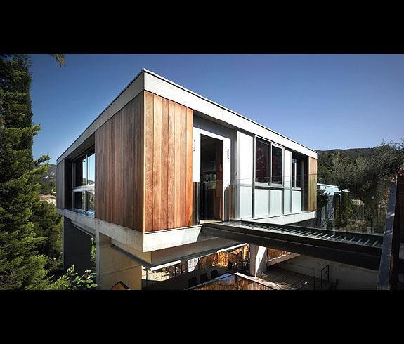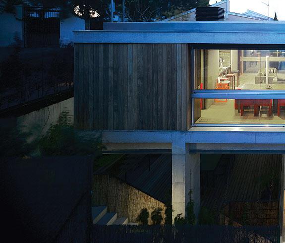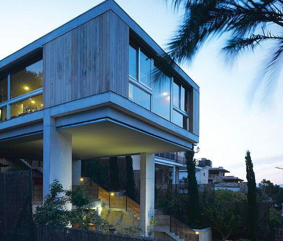 La casa se organiza como una construcción palafítica que se desvincula del fuerte desnivel de la ladera para plantear unas circulaciones interiores más cómodas que las resultantes de las construcciones escalonadas adaptadas al terreno. De esta forma, además, se aprovechan mejor las ventilaciones cruzadas y las vistas.