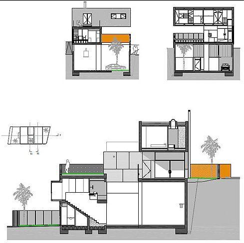 Ambas casas realizan los retranqueos exigidos por la normativa, de forma que estos espacios, así como la cualificación de las cubiertas, dotan a la casa de terrazas verdes de uso en cada una de las viviendas.