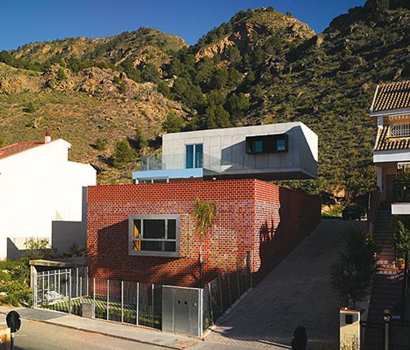 La nueva parcela tiene un desnivel, según el lado mayor, de 5 m de altura aproximadamente, lindando a vía pública en tres de sus cuatro lados -de esta forma una casa aprovecha la parte inferior del solar adaptándose a la topografía y haciendo uso de ella (casa tierra). La otra, en la parte alta, se abre al paisaje disfrutando de una vista cruzada de la montaña y la Huerta (casa cielo).