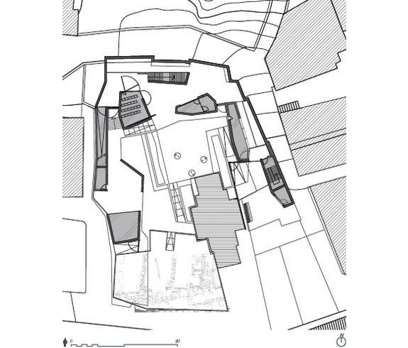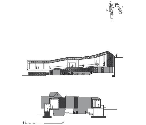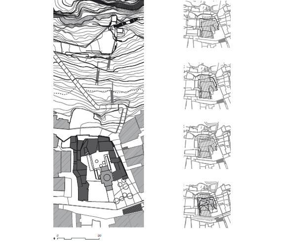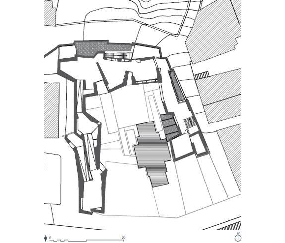 El edificio propuesto tiende a adaptarse a las múltiples condiciones de contorno, dando respuesta a la conservación de los restos y también consolidando el lugar desde un punto de vista formal y dimensional; poniendo especial atención a la integración en la ladera del monte y en su visión desde el castillo.