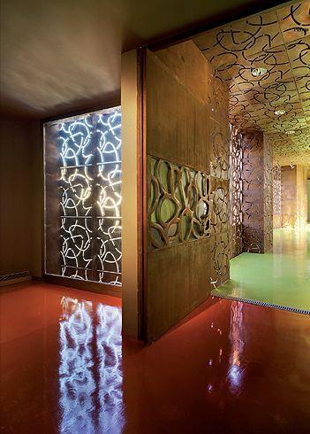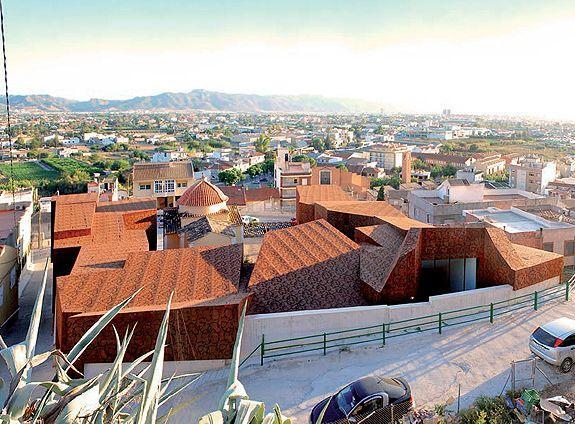 Como recorrido, resuelve sus accesos mediante rampas que solucionan el problema de la accesibilidad y también la inserción volumétrica de la pieza en el entorno. Como parásito, se mimetiza en colores y formas y se cubre con una piel de caligrafía vegetal que tapiza la totalidad del edificio. Su planta baja tiene una vocación publica en el sentido de proyectarse abierta a los vecinos. Sus grandes muros de celosía metálica, a veces correderos, y habitaciones de hormigón construido con rudeza se presentan desnudos. Proporcionan cobijo y conexión con el exterior.