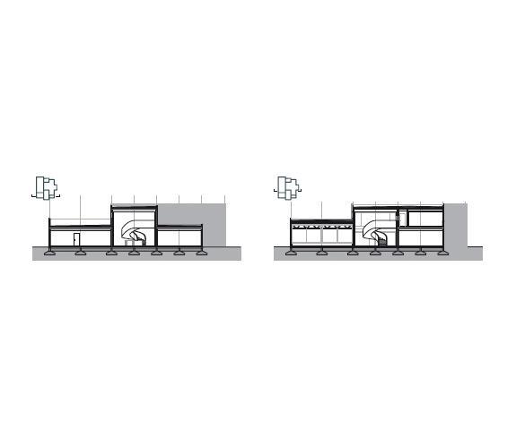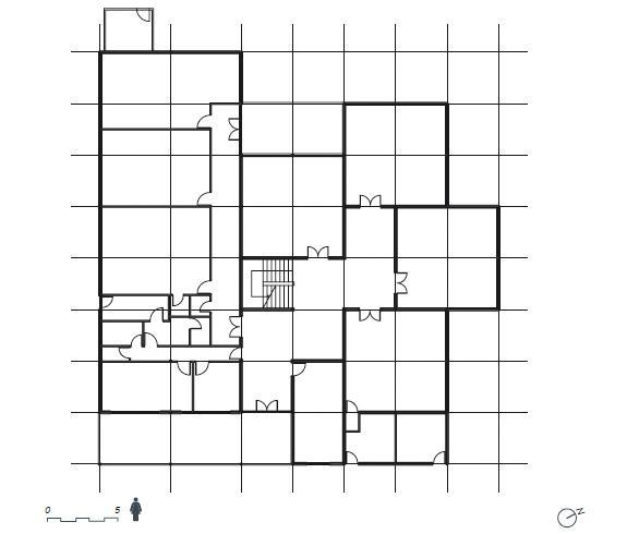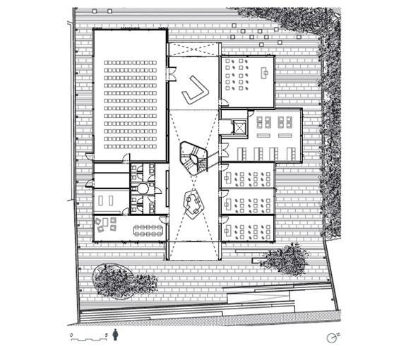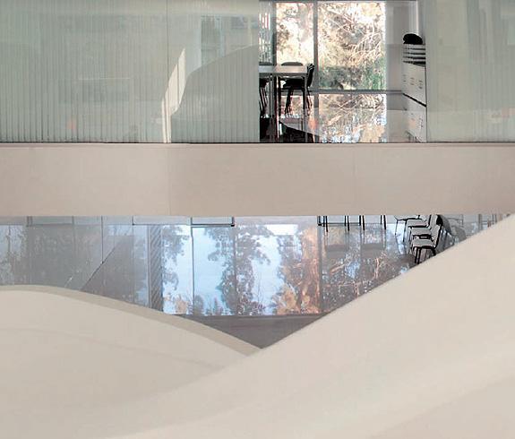 El cuerpo central que forma vestíbulo y distribuidor se proyecta al interior y al exterior como una caja limpia entre los otros cuerpos del edificio. Estrategia: concentrar la fuerza de la propuesta.