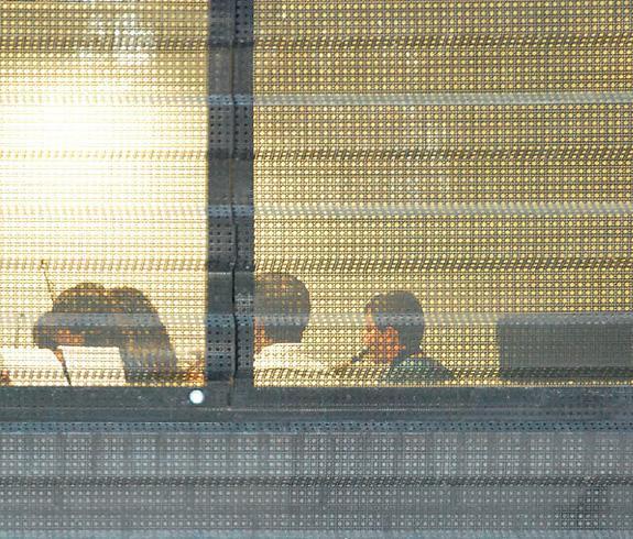 La piel de chapa le da al edificio un aspecto homogéneo, que deja entrever la antigua fachada, esta piel tiene una doble función, proteger al edificio del sol y proteger el edificio.