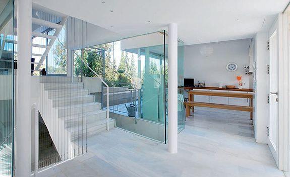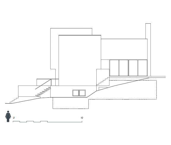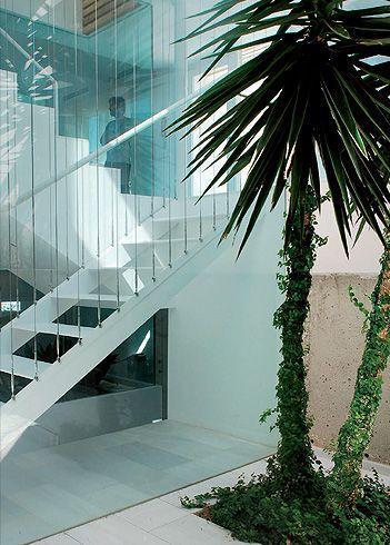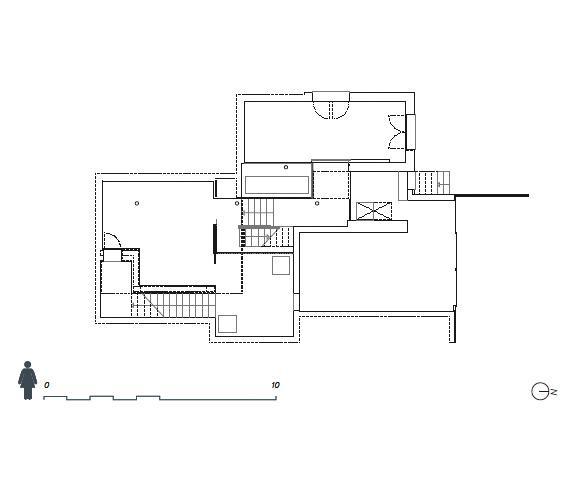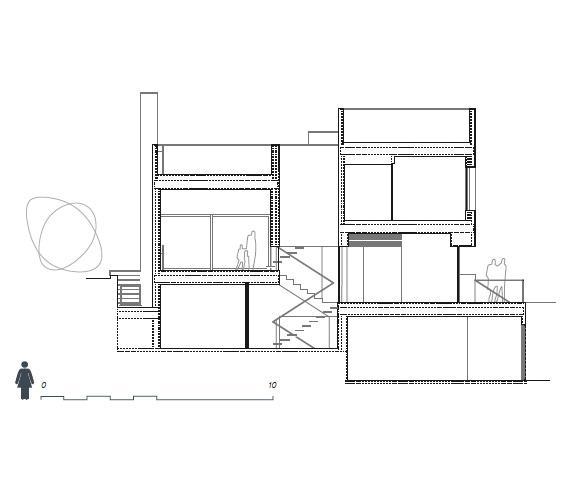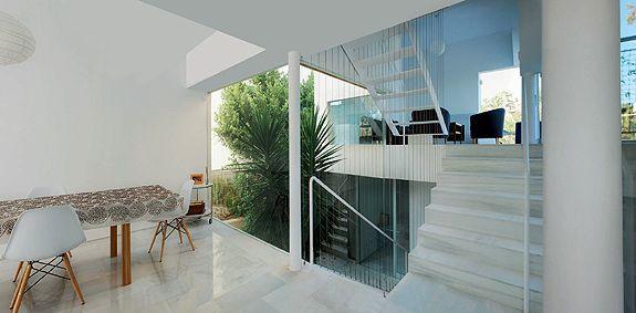 Entre las piezas se intercalan distintos patios que proporcionan luz a la planta sótano que quedará incorporada al discurso arquitectónico como una planta más, de igual importancia. La vivienda se abre a estos patios, a estos lugares intermedios buscando intimidad, sombra, ventilación y dejando altas medianeras blancas que dan la espalda al vecino próximo.