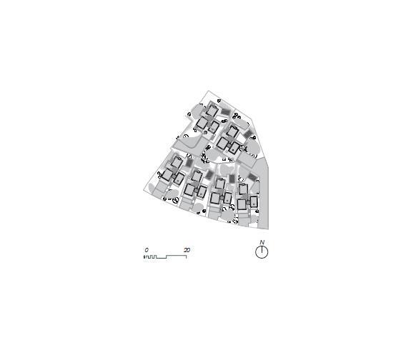 La solución proyectada se organiza en un conjunto formado por seis viviendas unifamiliares aisladas (de las cuales se ha completado la primera fase de dos viviendas) respetando al límite los retranqueos que establece la norma y optando por la construcción en dos plantas más sótano.