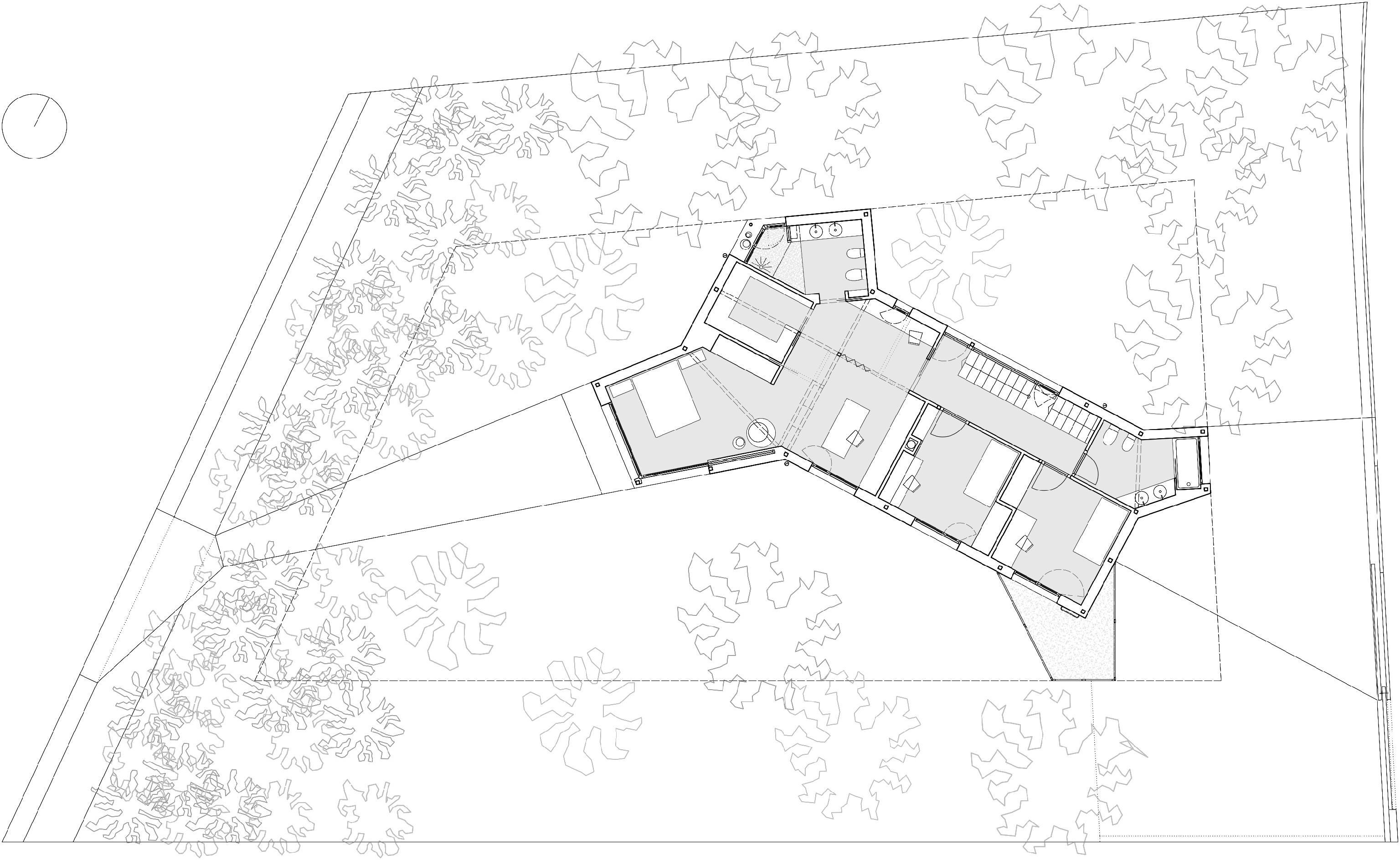 La reorientación del volumen principal respecto a la parcela, junto a un exigente control solar y la ventilación cruzada de todas las estancias reducen sensiblemente sus necesidades energéticas de climatización.