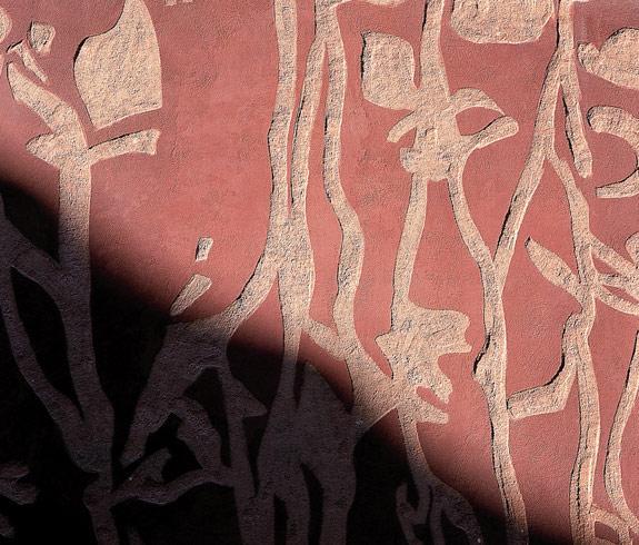 se trasladó a papel vegetal a escala 1:1 y se esgrafió sobre estuco de cal a
