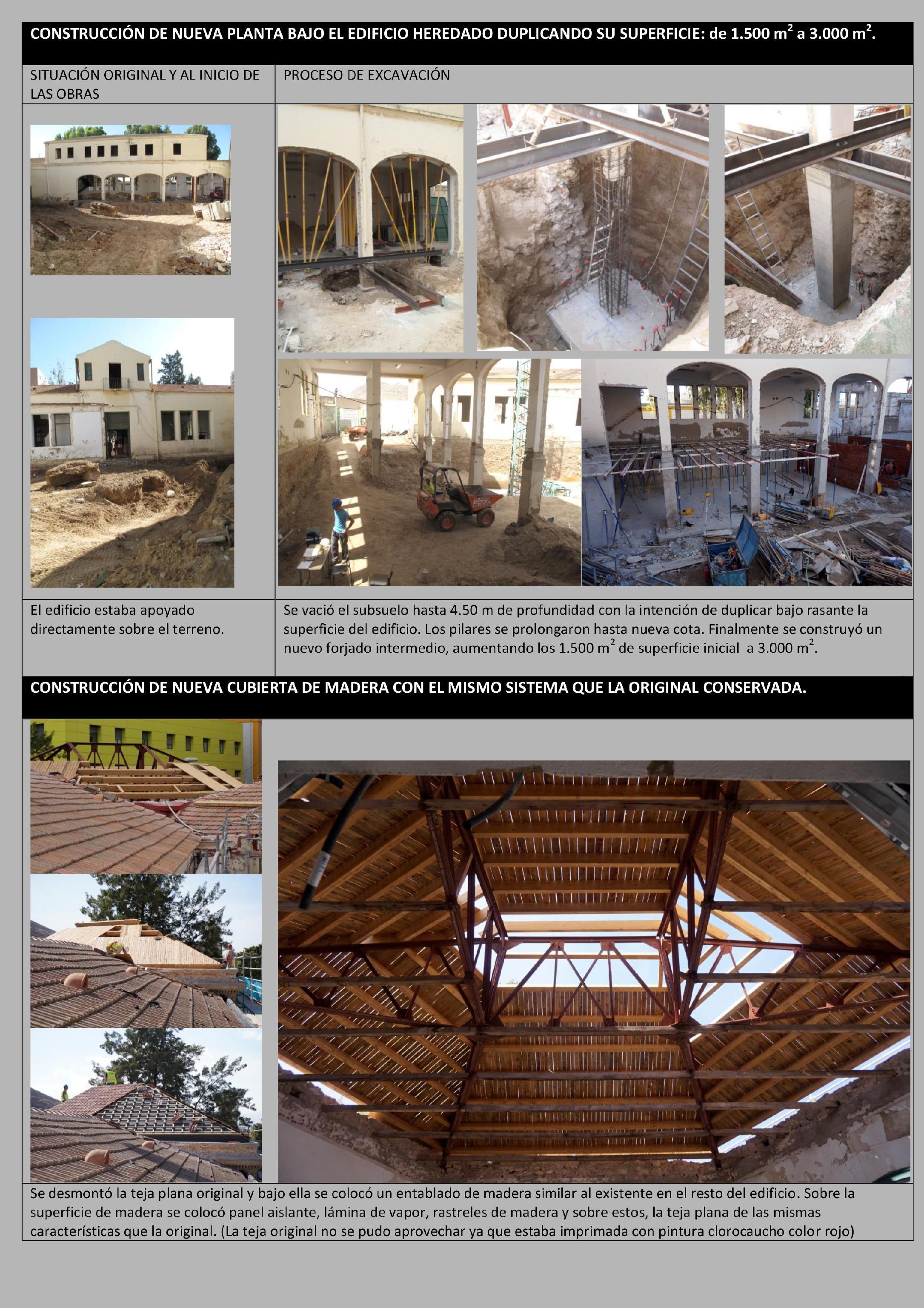 La rehabilitación consistió en mantener todos sus elementos originales: muros de carga de fachadas, disposición de huecos, carpintería interior y exterior original de madera, cubiertas, tejas, sin variar su composición estética respetando el proyecto de Lorenzo Ros. Si bien mejoramos su aspecto, ya que por primera vez en sus 90 años de historia, el edificio ha completado por fin el anillo triangular tal como lo ideó el arquitecto, al cerrar el tercer vértice que nunca llegó a ejecutarse.
