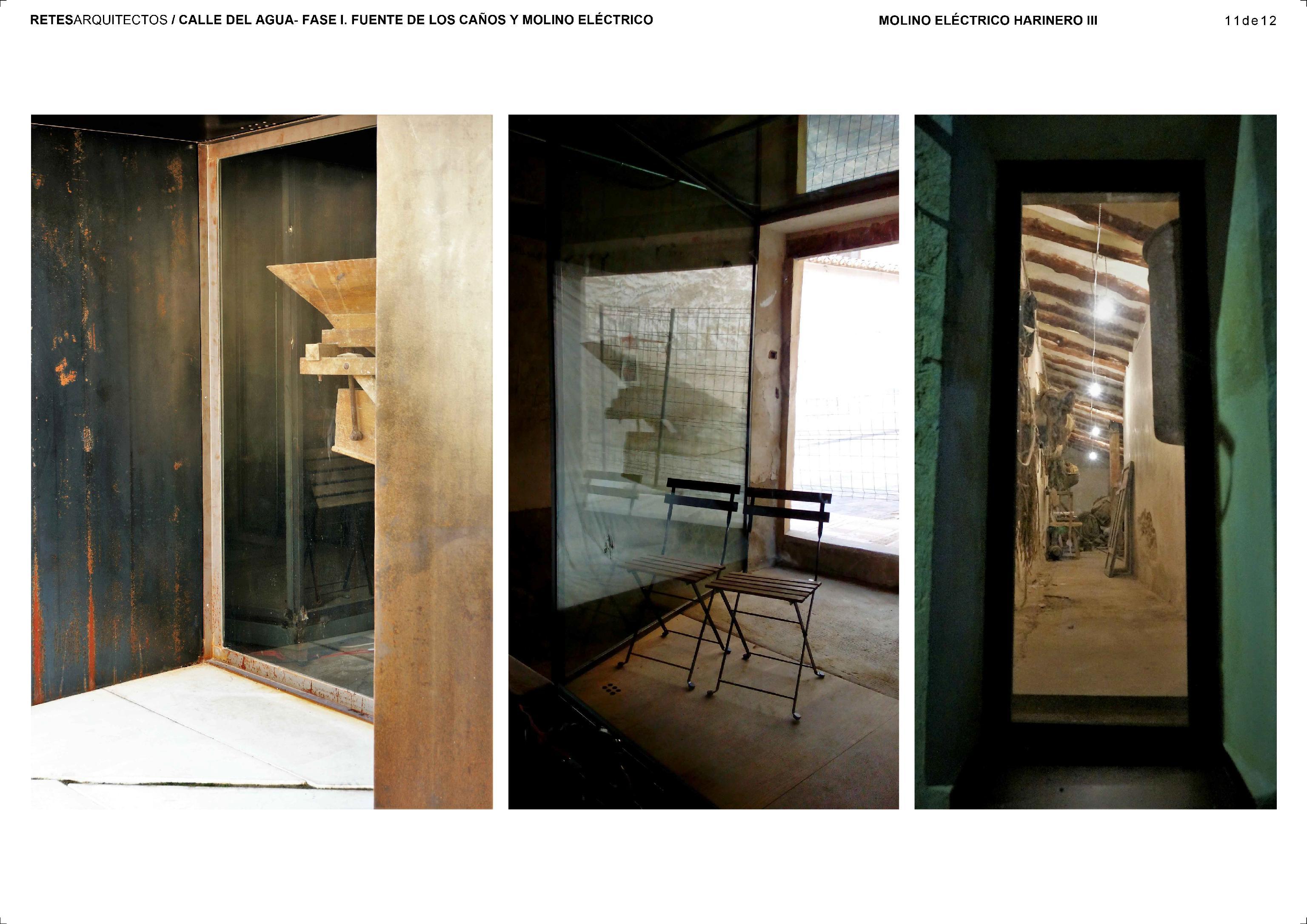 Así en la fase 1 ejecutada, la recuperación del molino harinero eléctrico se contempla desde el exterior, evitando que la admisión de personas obligue a transformar totalmente el contenido. Esta primera vitrina se ha centrado en la visión entrópica del paso del tiempo, conservando el interior exactamente igual que cuando cerró su actividad. En el video que se proyecta y en los QR se profundiza en su conocimiento.