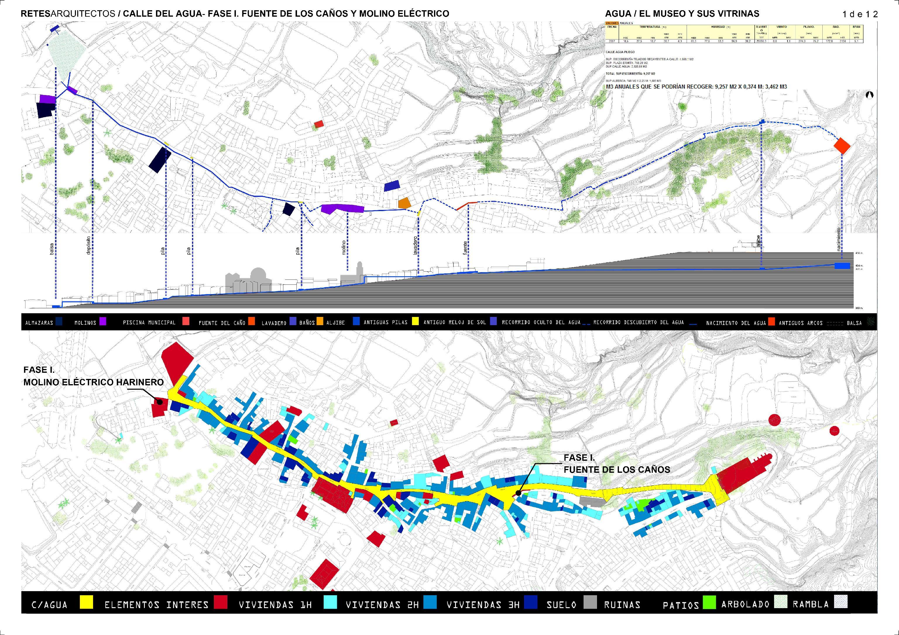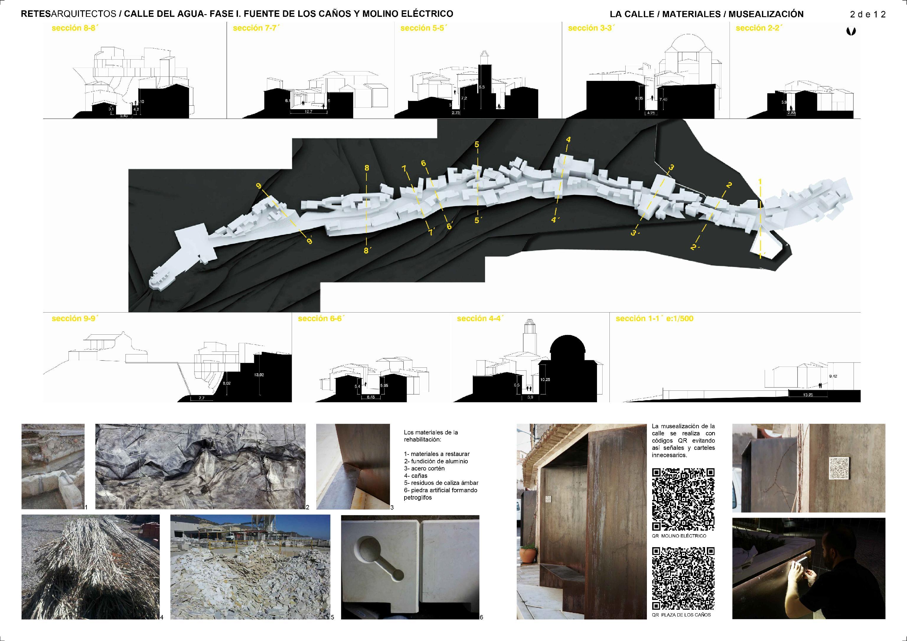 El proyecto plantea las relaciones entre agua, energía y tiempo como factores que se van interrelacionando a lo largo del recorrido de la calle y que han condicionado el uso social del espacio.