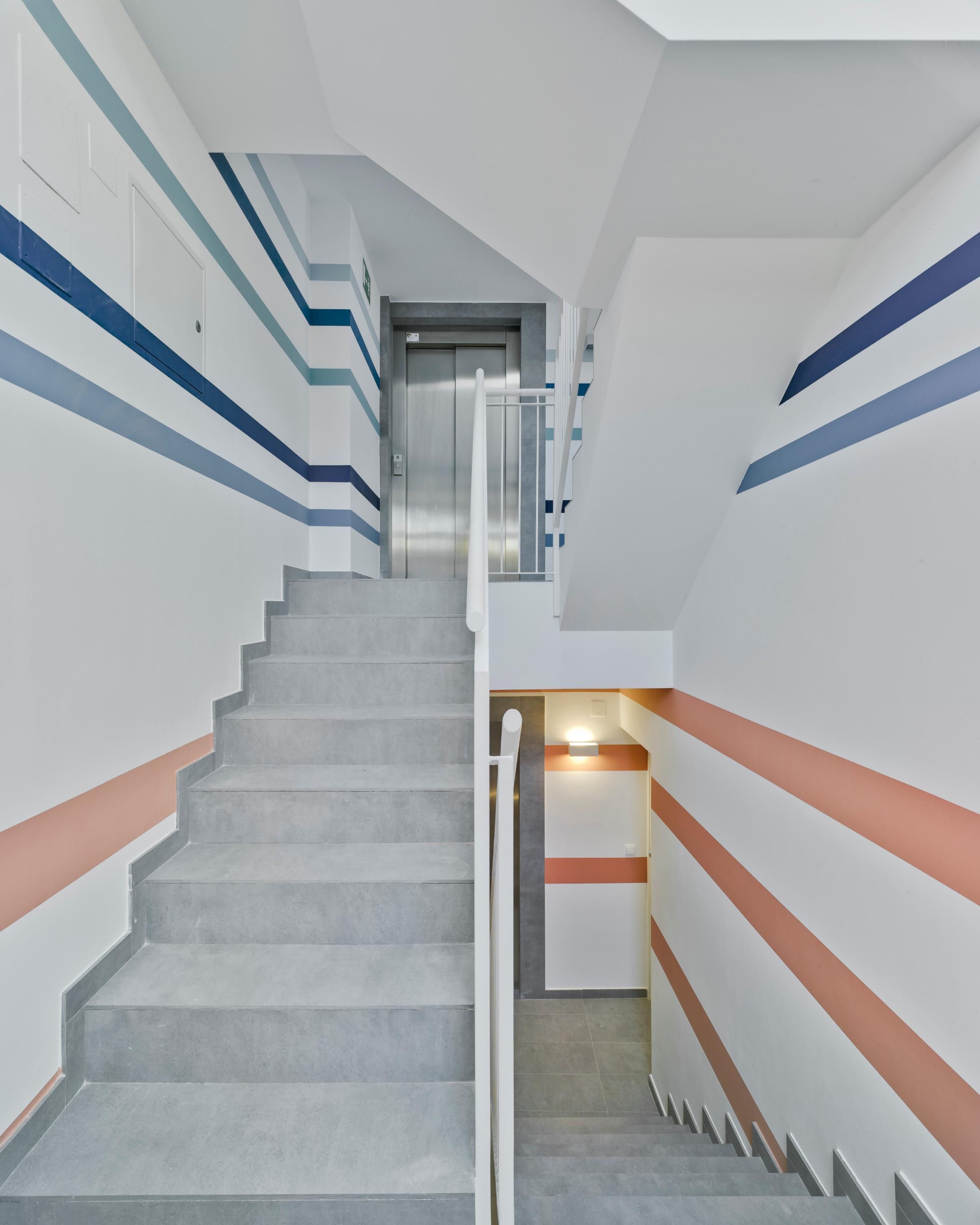El tratamiento exterior corresponde a la voluntad de identificar las acciones de proyecto, con la intención de subrayar el carácter histórico del edificio, aprovechando y potenciando su distinguida ubicación en la ciudad.