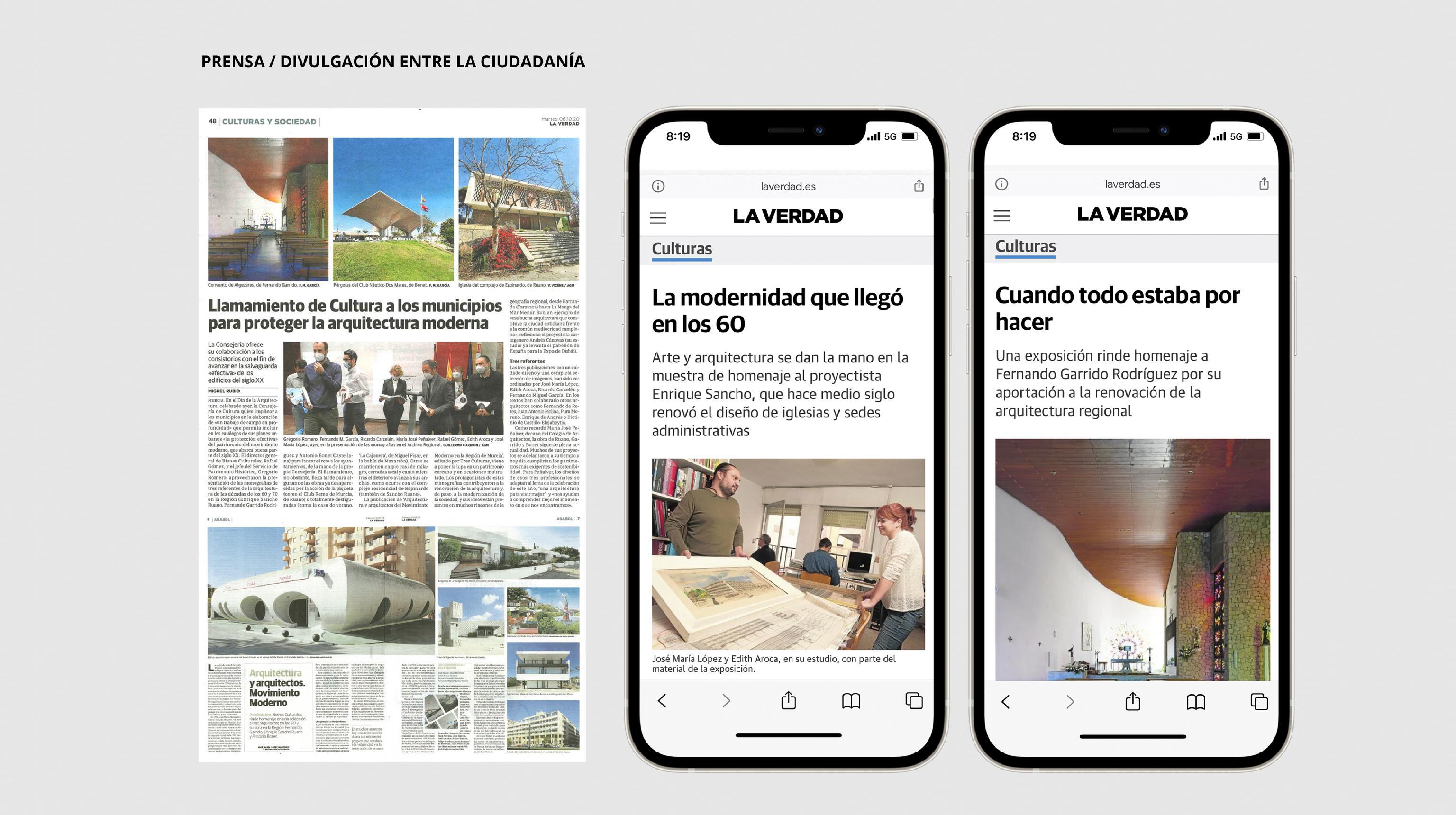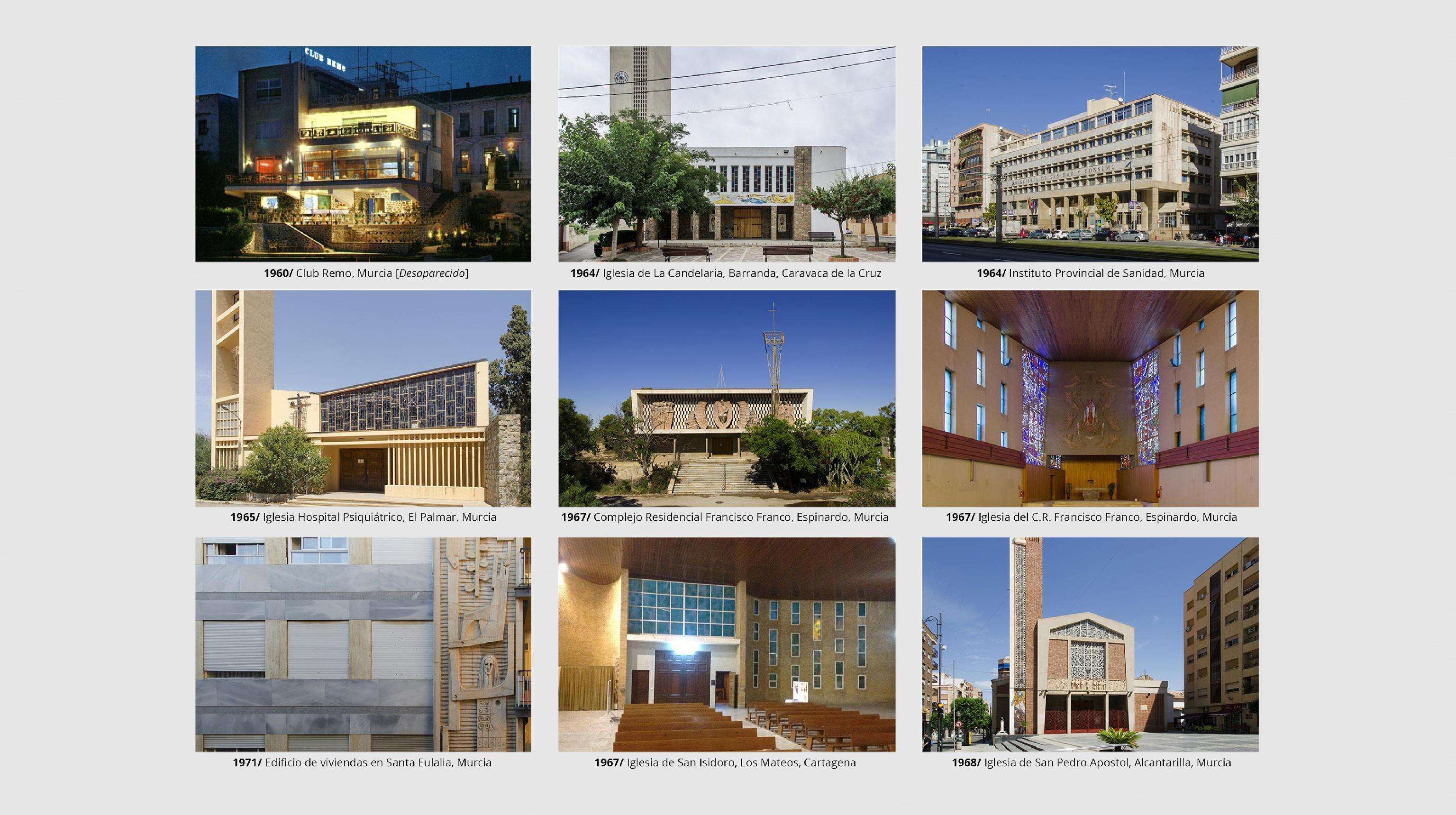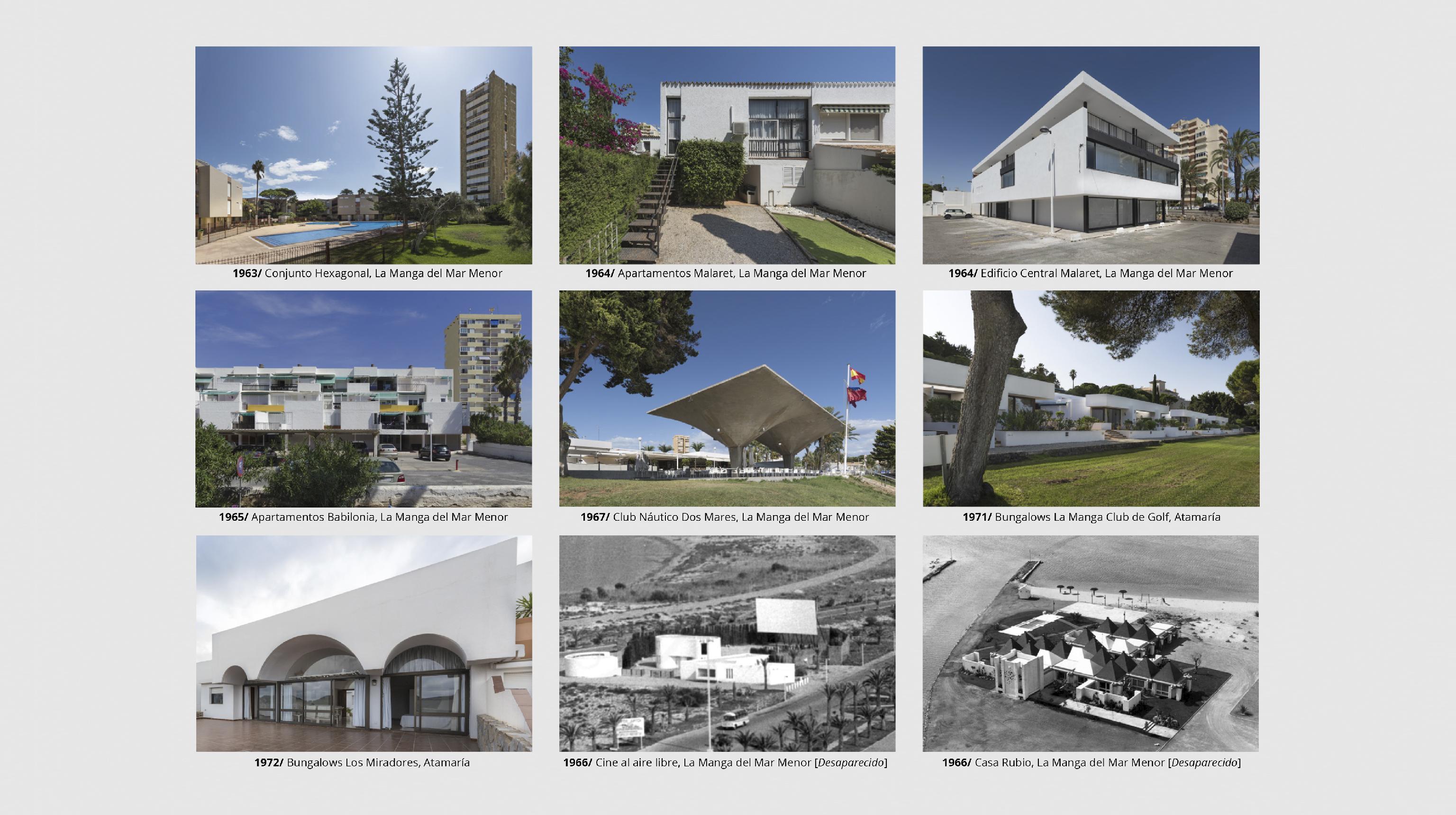 Con la publicación de las monografías que conforman la colección Arquitectura y Arquitectos del Movimiento Moderno en la Región de Murcia, se recupera a tres arquitectos y su obra en la década de los 60 en la Región: Fernando Garrido Rodríguez (I) encarna el organicismo, expresión del momento social del país, de ahí el título De la relación entre el arte y la arquitectura entre los sentidos y la razón. Enrique Sancho Ruano (II) representa el racionalismo ortodoxo desde sus obras para la Diócesis y las realizadas para la Diputación, dando forma a La modernidad en la Arquitectura de los años 60. Antonio Bonet Castellana (III) mostrará una visión profunda del medio y el paisaje en la Arquitectura, y nos introducirá en La Manga mediante Dunas y turismo de masas en La Manga del Mar Menor.