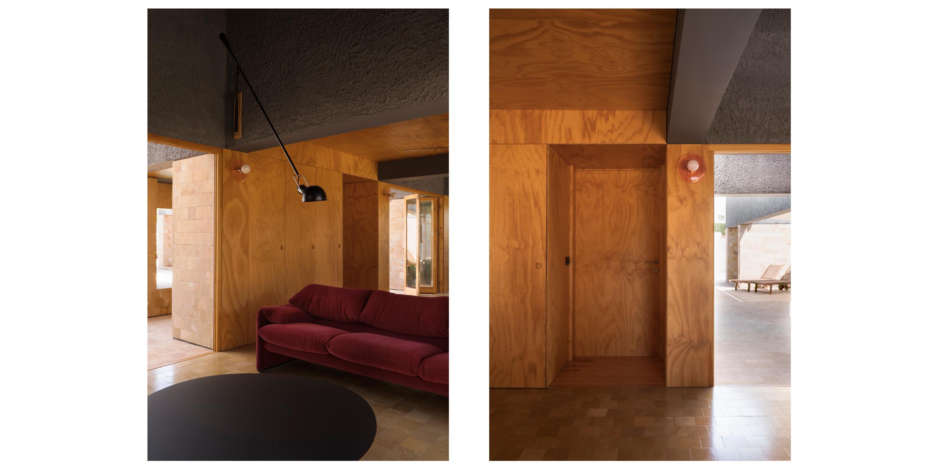 Se vive dentro y fuera simultáneamente. Los cerramientos se pliegan, se cierran y se abren. Los pavimentos exteriores, en forma de adoquín, colonizan el interior. Hay comedores de día y de noche, de primavera y verano; zonas de estar para el amanecer y para el atardecer.