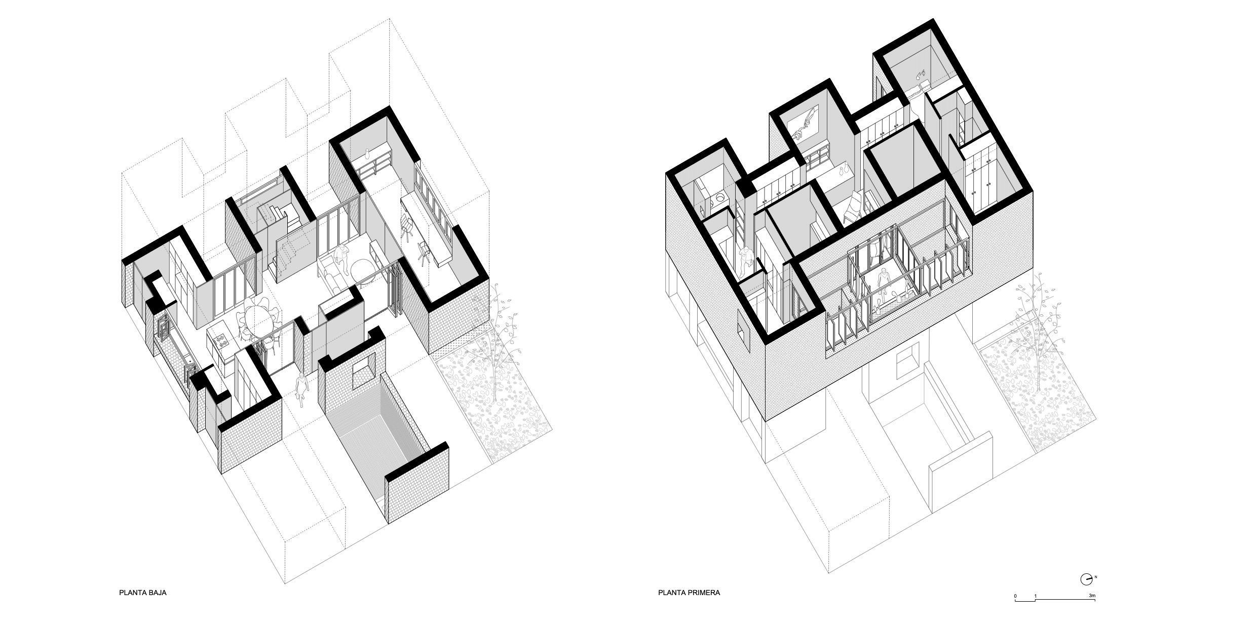 La arquitectura ordena el interior y el exterior. Se construye un amplio catálogo de espacios que diluyen los límites de la vivienda. La casa es introvertida, intima y privada; a la vez que infinita. Los espacios interiores se proyectan hacia el exterior en continuidad.
