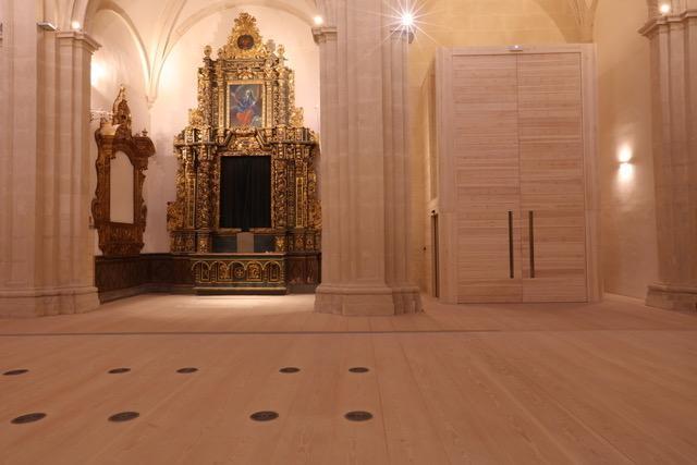 En el Palacio de San Esteban venimos realizando de forma continuada trabajos de acondicionamiento y de intervención en diferentes zonas desde el año 2000. Una vez concluidos los proyectos en los patios Sur y Norte en el año 2008, se nos encarga desde la Presidencia del Gobierno un proyecto de restauración integral de adecuación de la Iglesia como sala multiuso para actos de representación de la presidencia con cabida para más de 350 personas, con la intención de que las nuevas tomas de posesión se puedan realizar en la iglesia como se hacía en 1983 cuando se realizó la 1ª.